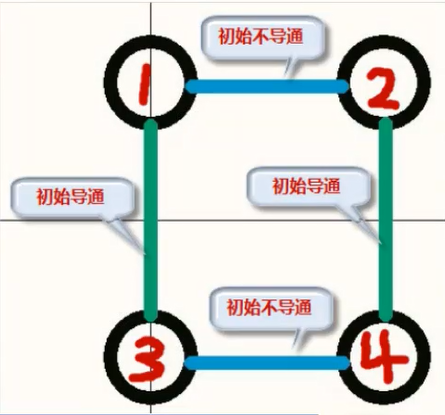 “1,2”和“3,4”管脚之间距离短,初始不导通,“1,3”和“2,4”管脚之间距离长,初始值导通。