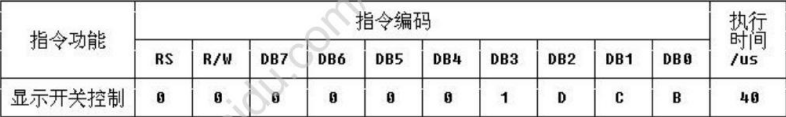 控制显示器开/关、光标显示/关闭以及光标是否闪烁D:0=显示功能关 1=显示功能开