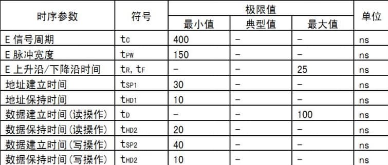 从上图可以看到,以上给的时间参数全部是 ns 级别的,而 51 单片机的机器周期是 1us,指令周期是 2-4 个机器周期,所以即便在程序里不加延时程序,也可以很好的配合 LCD1602 的时序要求了。