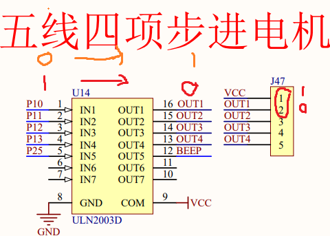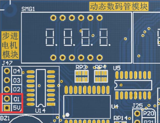 直流电机的两根线要连接在 J47 端子的 O1 和 5V 上