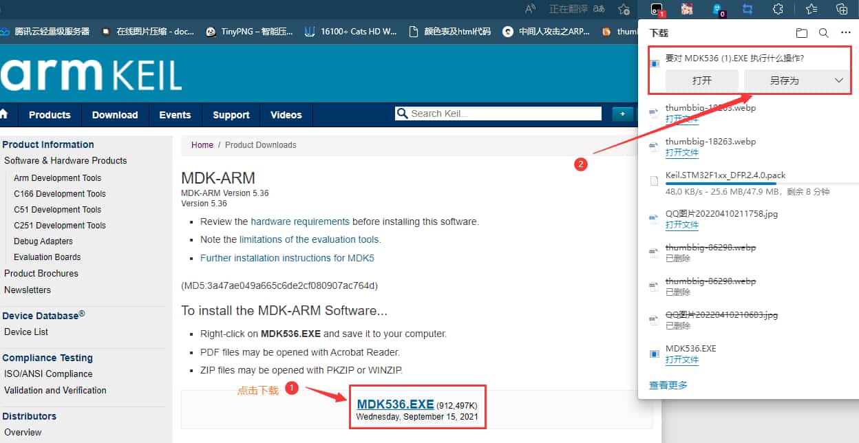 开发要用MDK,建议安装5.36版本,这个版本有AC5编译器,之后的版本不再集成