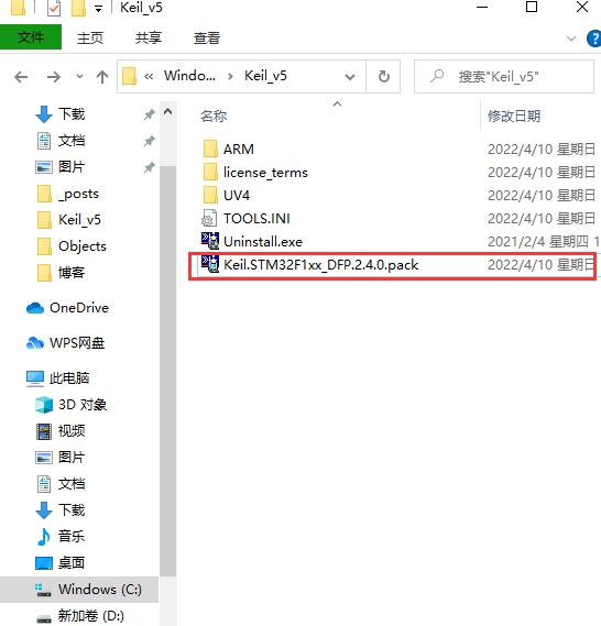 - 破解完成后还需要安装STM32的芯片包(不然你没有芯片也不能编译代码);直接去 [MDK5 Software Packs](https://www.keil.com/dd2/Pack/# !# eula-container)下载,记得选择正确的型号,因为我的板子是 STM32F103RDT6;所以我就下载 STM32F1系列的(保存目录最好存你 keil MDK 安装目录下)