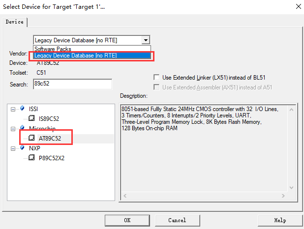 MDK-For Cortex 524.exe,然后看看有没有变灰,变了就OK,实在不行重启,还不行的话就新建一个工程,选择另一个不要选下面这个: