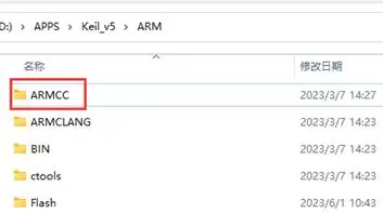 - 安装最新版本后手动添加AC5编译器,安装完MDK后把ARMCC文件夹手动放到keil安装目录的ARM文件夹中,然后在keil中手动添加,选择刚刚添加的文件夹